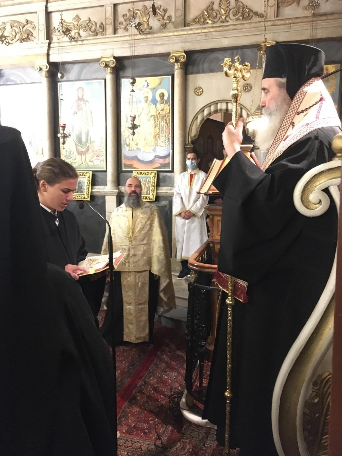 Πρό της απολύσεως εγένετο η χειροθεσία δύο νέων αναγνωστών εκ της νεανικής συντροφιάς της ενορίας, ήτοι των 1) Δημητρίου Ι. Μπουγιατιώτη φοιτητή και 2) Αντωνίου Β. Μπαλαμπάνη μαθητή Λυκείου.