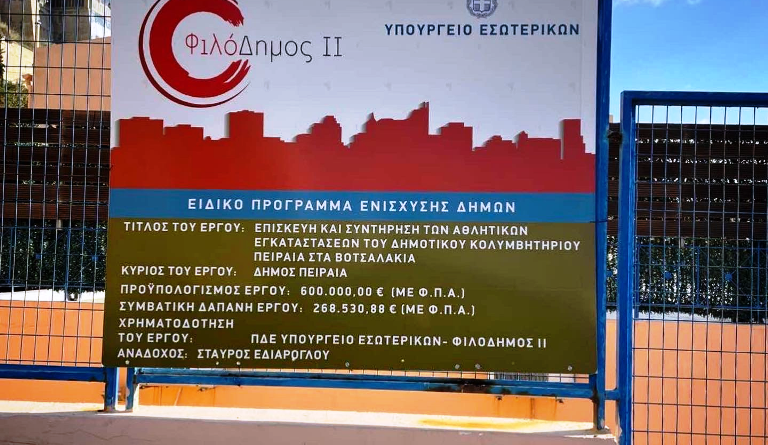 Δήμος Πειραιά.Ανακατασκευή του δημοτικού κολυμβητηρίου «Ανδρέας Γαρύφαλλος»