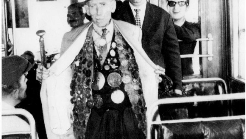 Και αμέσως δέκα στιβαρά χέρια, πίσω – μπρος, τον ανέσυραν σαν πούπουλο και τον κάθισαν αναπαυτικά στο πρυμναίο κάθισμα του λεωφορείου (που ήταν τριθέσιο) απέναντι από τον Περαματιώτη εισπράκτορα Βλάσση Σκαλτσά, που χαμογέλασε καλοκάγαθα γνωρίζοντας τον στρατηγό, και φυσικά για εισιτήριο ούτε λόγος να γίνεται! Με μια τέτοια προσωπικότητα, κανείς πληρώνει για να ’χει μια φιλοσοφημένη ανταλλαγή απόψεων και όχι μόνον. Είπε λοιπόν ο εισπράκτορας: