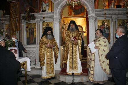 Τις ιερές ακολουθίες (θεία λειτουργία – επιμνημόσυνη δέηση) τέλεσε ο Ηγούμενος της Ιεράς Μονής Αναστάντος Χριστού, π. Μεθόδιος Κρητικός, πλαισιωμένος από ιερομόναχο της Μονής του και τον εφημέριο του Αγίου Χαραλάμπους.