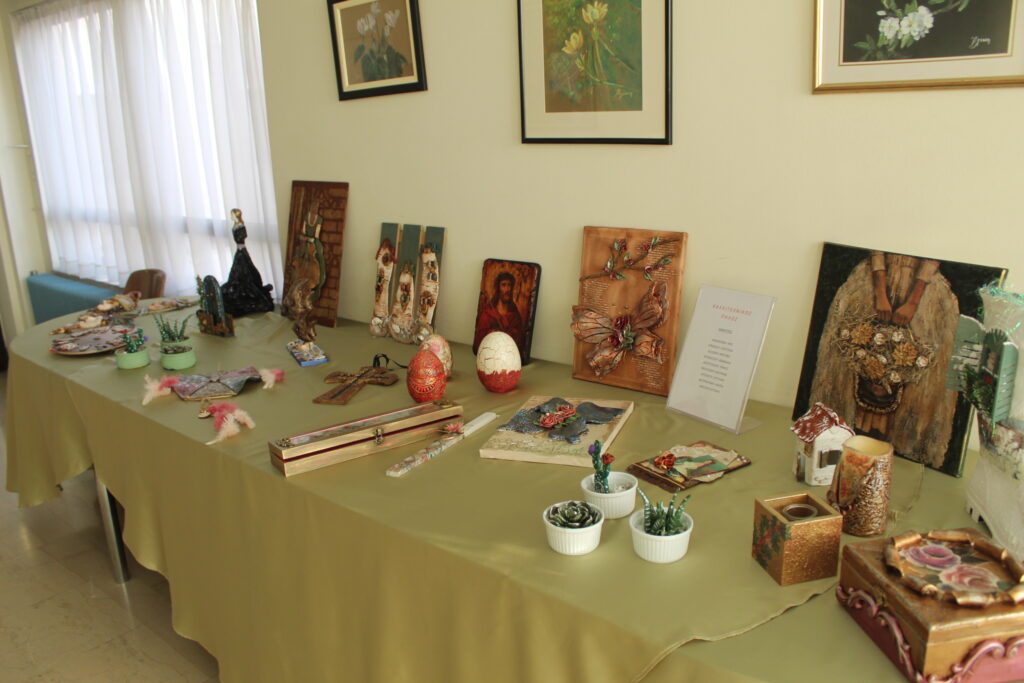 Παράλληλα, σε παρακείμενο χώρο, είχαμε την ευκαιρία να θαυμάσουμε θαυμάσια αριστουργήματα πλεκτικής, κατασκευές όνειρο με τεχνικές πηλού και ντεκουπάζ.