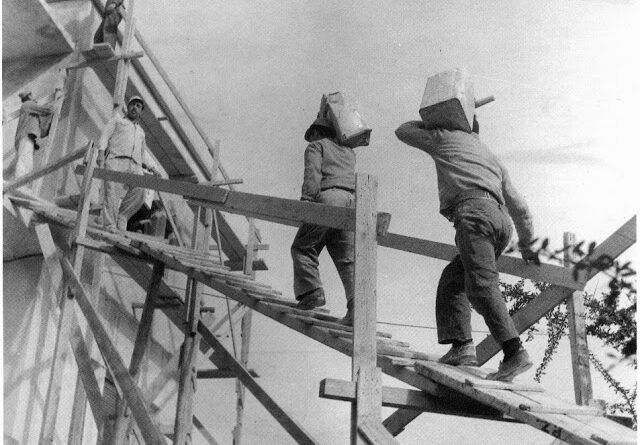 Με πρόσωπα χαρακωμένα, χειροδύναμοι και παντός καιρού. Τότε που ο βαρύς τενεκές πλήγιαζε τους ώμους. Όλα τα υλικά με τα χέρια και σπάνια όλες τις μέρες δουλειά…