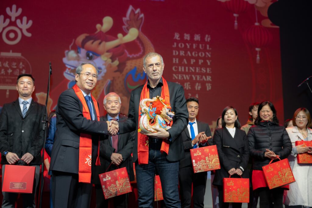 Ο Πρέσβης της Κίνας Xiao Junzheng, στον χαιρετισμό του, μεταξύ άλλων, επεσήμανε ότι η Κινεζική Πρωτοχρονιά αποτελεί τη σημαντικότερη γιορτή του κινέζικου έθνους και έχει πλούσια νοήματα. «Το 2024 είναι το έτος του Δράκου και σύμφωνα με την παράδοση ο Δράκος θεωρείται καλός οιωνός και συμβολίζει την μακροζωία, την ευημερία, τη γονιμότητα και την αρμονία», σημείωσε.