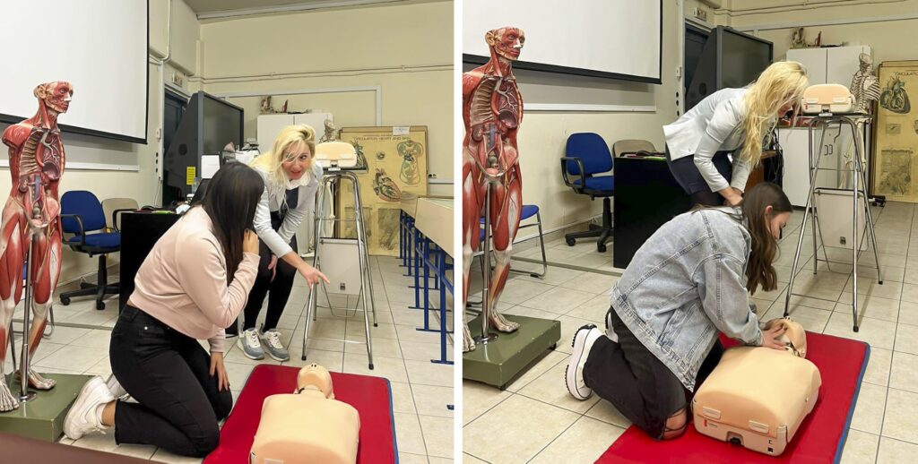 Πραγματοποιήθηκε αρχικά ξενάγηση στο Ερευνητικό Εργαστήριο Ανατομίας – Παθολογικής Ανατομίας & Φυσιολογίας – Διατροφής του τμήματος Βιοϊατρικών Επιστημών, του Πανεπιστημίου Δυτικής Αττικής. Εν συνεχεία έλαβε χώρα η εκπαίδευση τόσο στο θεωρητικό όσο και στο πρακτικό μέρος της εξάσκησης με τα εκπαιδευτικά προπλάσματα εφαρμογής καρδιοαναπνευστικής αναζωογόνησης σε πραγματικό χρόνο, αναδεικνύοντας την ετοιμότητα τους και την ικανότητα ανταπόκρισης της επείγουσας προνοσοκομειακής φροντίδας, αναπτύσσοντας ικανότητες σε θέματα διαχείρισης του πολυτραυματία σύμφωνα με τις αρχές του PHTLS και του ATLS, παρουσιάζοντας την πρωταρχική αξιολόγηση του τραυματία «Χρυσός Κανόνας» ο οποίος βασίζεται στην εκτίμηση των ζωτικών σημείων με το «ABCDE». Ετελέσθη ταυτόχρονα θεωρητική και πρακτική επίδειξή τους, σε συνεργασία με πλήρωμα της Κινητής Μονάδας του ΕΚΑΒ και συγκεκριμένα με την αγαστή και ταυτόχρονη συνεργασία του ιατρού της Κινητής Μονάδας του ΕΚΑΒ, Θωρακοχειρουργού και Διευθυντή ΕΣΥ Περιφερειακού Γενικού Νοσοκομείου Νίκαιας Πειραιά «Άγιος Παντελεήμων» κ. Ζαράγκα Στυλιανού, καθώς και σε συνεργασία με το υπόλοιπο πλήρωμα της κινητής μονάδας.