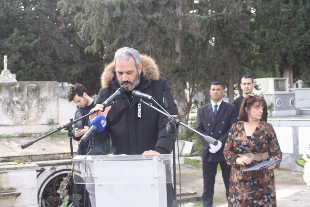 Στεφάνι κατέθεσε ο Εντεταλμένος Δημοτικός Σύμβουλος Δημήτρης Βλαχάκος, εκπροσωπώντας τον Δήμαρχο Πειραιά Γιάννη Μώραλη.