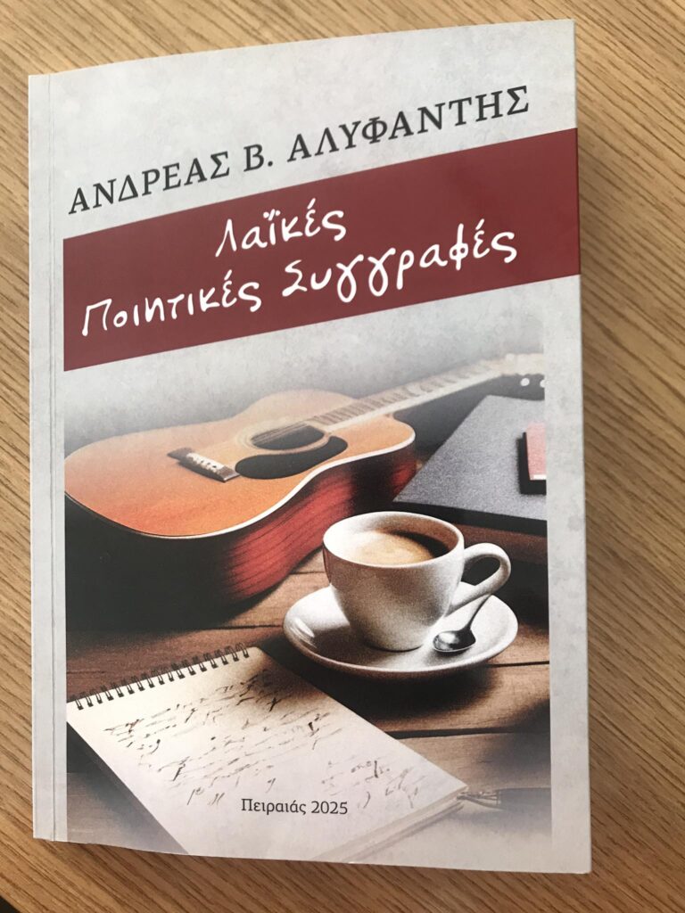 Άλλη μια ευχάριστη έκπληξη το 8ο βιβλίο του Πειραιώτη στοχαστή, συγγραφέα και ποιητή Ανδρέα Αλυφαντή, με τον τίτλο «Λαϊκές Ποιητικές Συγγραφές», που έκδωσε πρόσφατα και είχε την ευγένεια να μας αποστείλει, με ιδιόχειρη αφιέρωση.