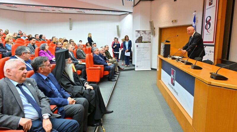 Ο εορτασμός της Εθνικής Επετείου της 25ης Μαρτίου τελέστηκε στην κατάμεστη Αίθουσα Συνεδρίων του Πανεπιστημίου μας, παρουσία των Πρυτανικών Αρχών, Καθηγητών, μελών του Διοικητικού προσωπικού του Πανεπιστημίου, μελών των Αρχών του Δήμου Πειραιά καθώς και φοιτητών και φοιτητριών.