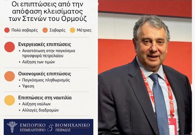 Ο Πρόεδρος του ΕΒΕΠ Βασίλης Κορκίδης επισημαίνει πως τα Στενά του Ορμούζ έχουν χαρακτηριστεί, ως το πιο ευάλωτο σημείο της παγκόσμιας ενέργειας, αφού δεν υπάρχει εναλλακτική θαλάσσια οδός. Έτσι, η διεθνής κοινότητα «κρατάει την ανάσα της», καθώς οι εξελίξεις της σύρραξης μεταξύ Ισραήλ και Ιράν, μετά και την εμπλοκή των ΗΠΑ έχουν φέρει στο προσκήνιο το χειρότερο σενάριο, που δεν είναι άλλο από την απόφαση του Ιράν για κλείσιμο των στενών του Ορμούζ. Το 20-25% του παγκόσμιου πετρελαίου διακινείται μέσω των Στενών και οποιαδήποτε διατάραξη στη ναυσιπλοΐα θα είχε άμεσες επιπτώσεις στην παγκόσμια ναυτιλία και την ενεργειακή ασφάλεια. Κατά μέσο όρο, πάνω από 3.000 δεξαμενόπλοια, διαπλέουν κάθε μήνα τα Στενά του Ορμούζ και σύμφωνα με τα δεδομένα της Lloyd’s List Intelligence το πρώτο τρίμηνο του έτους τα 1.201 ήταν ελληνόκτητα πλοία.