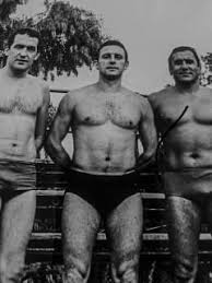 Στην φωτογραφία, όλο σχεδόν το Ελληνικό πόλο, σε τρία πρόσωπα «Καλφαμανώλης, Θυμαράς, Γαρύφαλλος!»