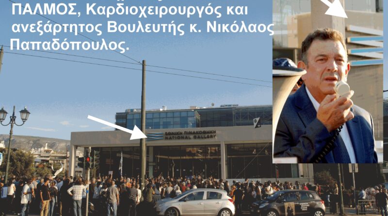 Στις 9 Σεπτεμβρίου (απόγευμα), το νεοσύστατο πολιτικό Κίνημα «ΕΛΛΗΝΙΚΟΣ ΠΑΛΜΟΣ» διοργάνωσε συγκέντρωση έξω από την Εθνική Πινακοθήκη, όπου σε 1.500 περίπου συγκεντρωμένους οπαδούς μίλησαν οι κ.κ. Νίκος Παπαδόπουλος (Πρόεδρος), ο Ακαδημαϊκός, Συγγραφέας και Διακεκριμένος Δικηγόρος Αθηνών Κωνσταντίνος Ι. Βαθιώτης, ο γνωστός Δημοσιογράφος Διονύσιος Μακρής (Διευθυντής Εφημερίδας «ΣΤΥΛΟΣ ΟΡΘΟΔΟΞΙΑΣ και του ιστότοπου – SITE www. Orthodoxia.gr), ο Πρόεδρος του ΙΝΚΑ Άγγελος Πιλάτης, ο Δημήτριος Μπακάλης (Πρόεδρος ΕΛΚΙΣ) και άλλοι.