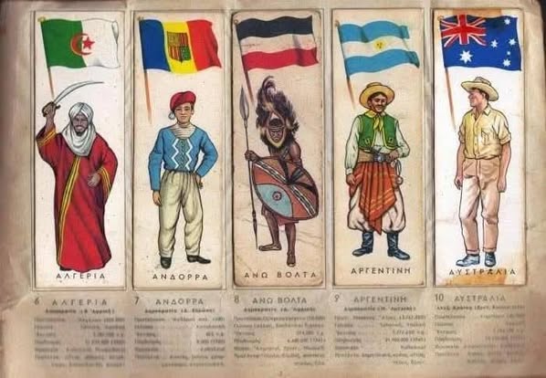 Το πιο γνωστό άλμπουμ της εταιρείας ΜΈΛΟ που έγινε ανάρπαστο ήταν αυτό με τις σημαίες και τις εθνικές ενδυμασίες όλων των κρατών της γης αποδεικνύοντας για ακόμα μια φορά πως η γεωγραφία ήταν είναι και θα είναι θέμα πρώτο.