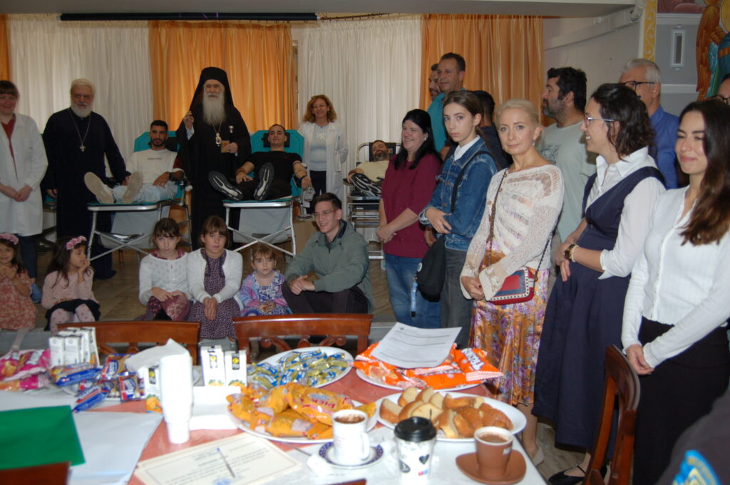 Επαίνεσε το ενοριακό έργο, συνεχάρη τους εθελοντές και ευλόγησε το Ιατρικό και Νοσηλευτικό προσωπικό του Νοσοκομείου «ΑΓΙΟΣ ΣΑΒΒΑΣ» που καλύπτει την ενοριακή αιμοδοσία.