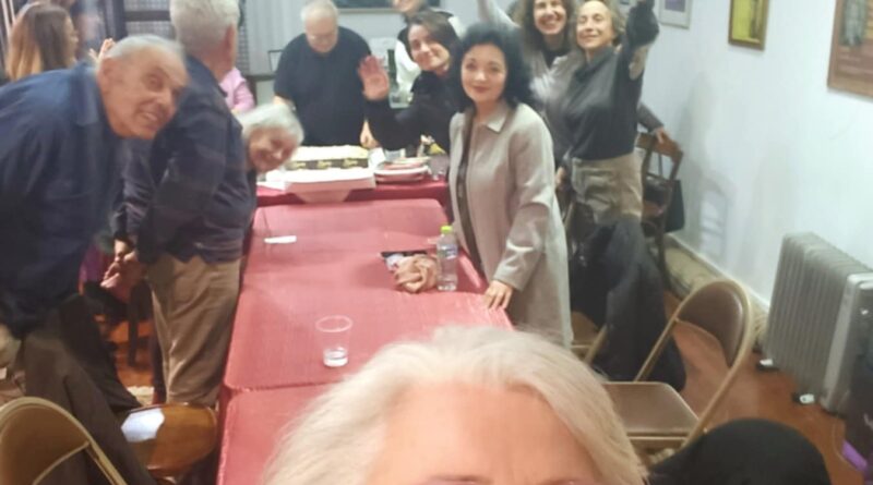 Η θεατρική ομάδα ενηλίκων της Φιλολογικής Στέγης Πειραιά, με εμψυχωτή τον Γιώργο Καλόξυλο έκοψε την πίτα της σε εορταστική ατμόσφαιρα και κερδισμένη στο φλουρί τη Ντιάνα Μαντζαβίνου. Πάντα να είναι τυχερή και υγιής η Ντιάνα, μια κυρία της μεγάλης προσφοράς στον Πειραιά.