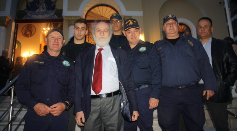 Πάντα αρωγός των πανηγύρεων των Ναών ο πρόεδρος των Καταναλωτών Ελλάδας Μιχάλης Τσιφάκης, που εικονίζεται στον Ιερό Ναό Παναγίας Ζωοδόχου Πηγής Χατζηκυριακείου, με τα καμάρια του Λιμενικού μας Σώματος.
